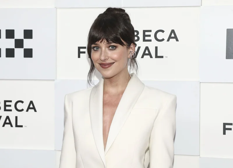 Необычное платье-смокинг: Дакота Джонсон посетила кинофестиваль Tribeсa в Нью-Йорке